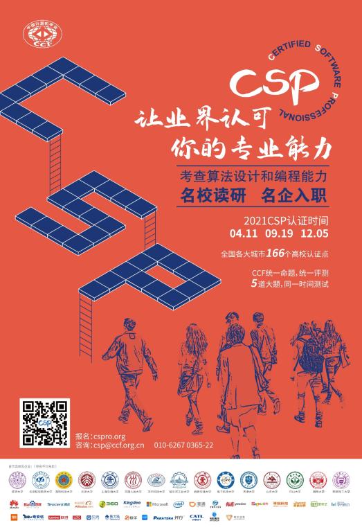 为了提高学生编程、算法设计能力和工程实践能力,落实学院本科生实践能力提升计划,提高学生就业和进一步深造核心竞争力,拟组织学院学生自愿参加中国计算机学会(CCF)CSP(计算机软件能力)第24次认证。
