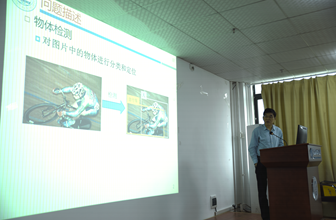 刘文教授介绍了研究课题“基于弱监督学习的物体检测”,对基于弱监督学习的物体检测的课题研究进展作了相关汇报,就图像中的物体检测、语义分割技术的发展简介,图像检测技术在自动驾驶、动态监控、人机交互场景的需求与应用,汇报了在具体研究中的检测需求、实验数据生成、算法思路流程、实验检测结果等研究内容,分析了多项核心算法研究的算法性能,并对训练效率做了精彩总结。