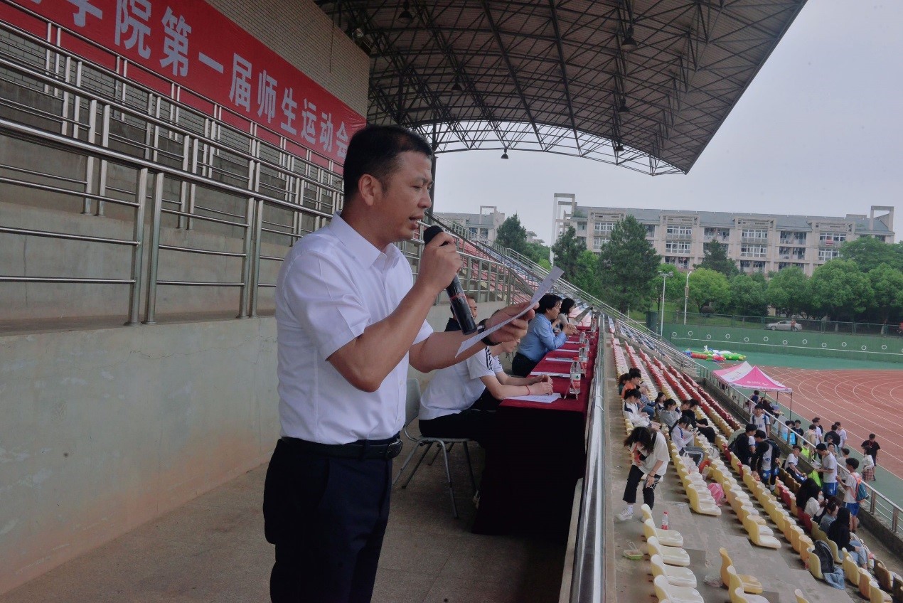 开幕式上,胡红辉代表学院致辞,他说,“健康成长、快乐生活”一直是我们坚持并努力为之奋斗的目标,并表示希望通过此次师生运动会,培养大家勇于挑战、敢于竞争的精神,让师生们一道收获快乐、友谊与成功,享受体育竞技的魅力,感受体育运动带来的全新体验。