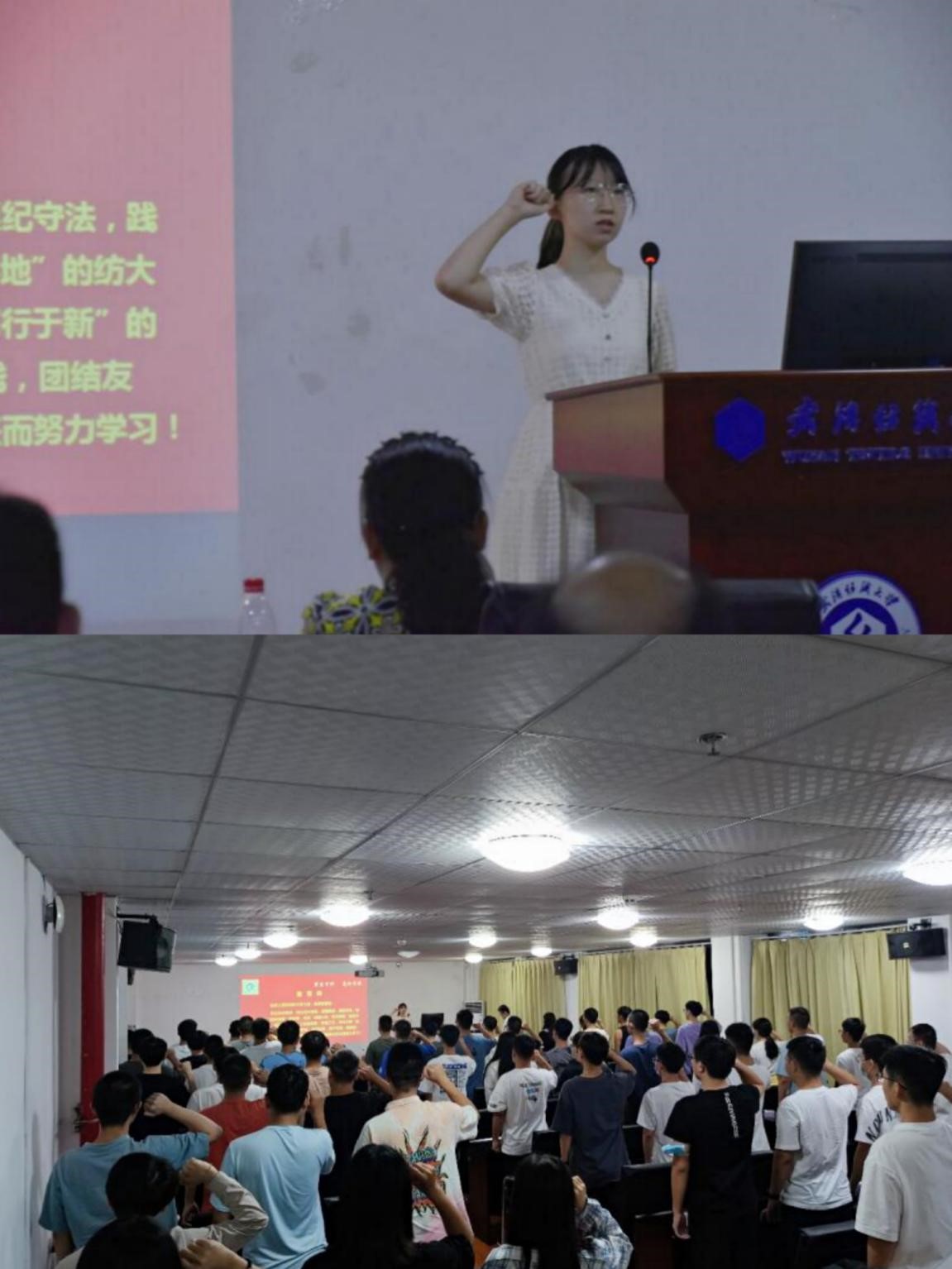 开学典礼上,陈凯旋同学带领全体新生进行庄严宣誓,并向9月份过生日的同学送上了祝福。
