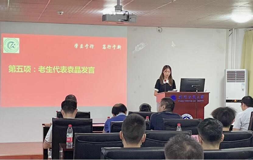 研究生新生代表周佳爽,本科生新生代表高雅琪分别发言,他们的发言表达了对大学学习生活的向往,展现了以实现自身价值为最终目的的毅力,为全院新生树立了榜样。