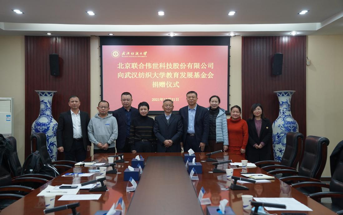 12月21日下午,“北京联合伟世科技股份有限公司——武汉纺织大学智能创新人才培养与研究基地”建设捐赠仪式在行政楼四楼会议室举行。北京联合伟世科技股份有限公司董事长刘廷瑞、总裁李鹏,英特尔(中国)渠道教育解决方案经理吴缘,校党委副书记、副校长罗锦银、武汉纺织大学教育发展基金会王燕,计算机科学与人工智能学院胡新荣、胡红辉、李丽等校企领导共同出席捐赠仪式,捐赠仪式由胡红辉主持。