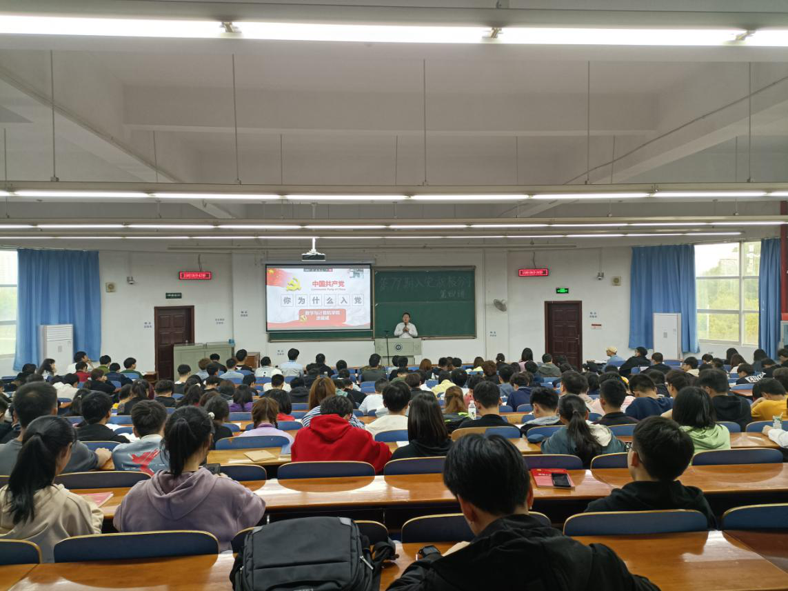 4月15日下午,“团团学党史,党校开讲了”第四讲开课,邀请计算机与人工智能学院党委副书记涂耀威在崇志楼T202、220教室以及企业微信直播平台为计算机与人工智能学院、管理学院、数理科学学院、技术研究院近700名79期入党积极分子培训班学员授课,主题为《你为什么入党》。