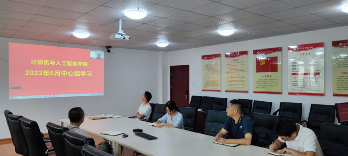 6月24日,计算机与人工智能学院党委在崇真楼南楼A4031举行六月中心组学习。会议由院党委书记晏伟主持。
