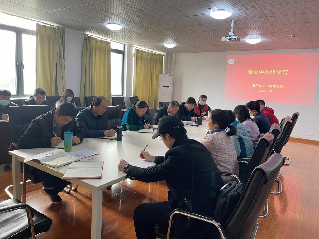 2022年3月3日,计算机与人工智能学院党委在崇真楼南楼A4031进行中心组(扩大)理论学习,学院全体党委委员、支部书记、系主任参加了会议。