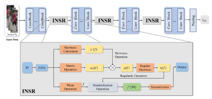 域泛化行人重识别(Domain generalized person reidentification,DG-ReID)旨在训练一个模型,使其能够在源领域进行训练,并直接应用于未见的目标领域。传统的行人再识别方法大多依赖低阶统计量(如均值、方差等)来稳定源领域的数据分布。然而,这种方法的假设条件是数据呈高斯分布,而现实中许多数据分布并不满足这一假设,导致其广泛应用受阻。本文提出了一种基于高阶统计量偏度的域泛化行人重识别框架。该框架结合了实例归一化、偏度操作,通过引入引入高阶统计量和正则化机制,从数据的非对称性中提取丰富的特征信息,提升了模型对不同领域的适应能力,增强模型对复杂数据分布的识别能力,并且有效减轻不同领域之间的分布差异对模型性能的影响,提升了模型域泛化能力。