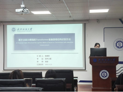 张朋乐同学分享的主题为“A Financial Table Structure Recognition Method Based on Transformer with Attention Enhancement”。在金融领域中表格结构识别对于信息自动化与决策效率至关重要,然而表格包含有/无边框、跨行跨列及背景干扰等复杂结构,导致序列预测错误。本文针对粘连单元格与过度分割问题,引入Mamba模块以增强模型对整体结构关系的理解,并设计协作注意力模块提升对边框等局部特征的感知能力。其次针对Pix2seq方法中边框漂移问题,提出位置损失函数以增强空间位置敏感性。为弥补中文金融表格数据稀缺,她们从真实金融PDF构建了高复杂度的中文表格数据集。实验表明他们的方法在表格结构识别中表现优异,在PubTabNet上mAP达74.95%、S-TEDS达95.17%,在中文金融数据集微调后mAP提升至66.70%。