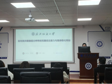黎瑶同学分享的主题为“Dual Path Attention and Re-parameterization Network for efficient image super-resolution”。深度学习方法在单图像超分辨率任务中已取得显著性能。近期关于高效超分辨率的研究主要集中于通过各种网络设计来减少参数量与计算复杂度。她们提出一种基于注意力机制与结构重参数化的超分辨率模型——双路径注意力与重参数化网络(DPARN),该网络利用分组卷积同时引入无参数注意力和增强空间注意力,以提升网络的特征提取能力。同时,使用知识蒸馏进行初始训练,期间教师网络的结构化知识将传递至学生网络;随后结合多种损失函数对学生网络进行微调,以保留高频细节并避免像素损失导致的过度平滑化。