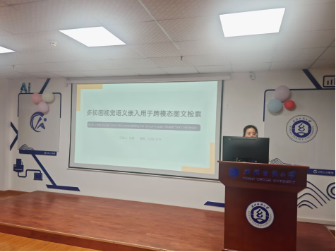 张蕾同学分享的主题为“Multi-view visual semantic embedding for cross-modal image-text retrieval”。视觉语义嵌入(VSE)是图文检索的主流方法,旨在将图像与对应文本映射到相近的嵌入空间。但图文数据存在显著类内差异:同一图像的不同描述常对应不同视角,内容差异较大。传统VSE将同类样本嵌入到相似位置,抑制了这种差异,影响泛化能力。本文提出多视图视觉语义嵌入(MV-VSE)框架,通过为图像学习多个嵌入来显式建模类内差异,并设计了多视图三元组损失进行联合优化。为兼容传统VSE模型和基于VSE的视觉语言预训I练(VLP)模型,本文将对比损失与三元组损失整合为多视图统一损失。