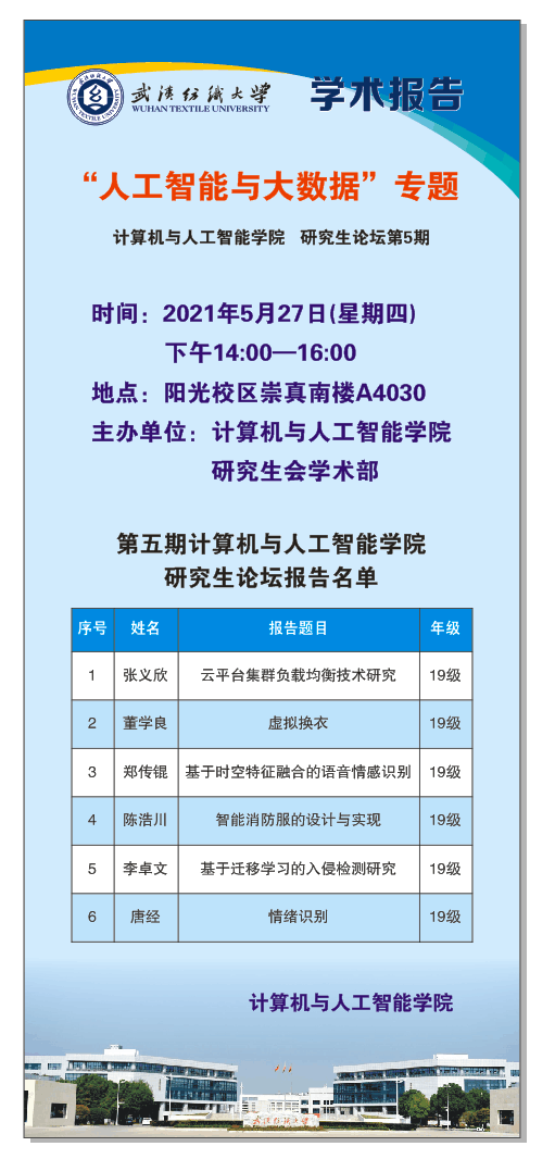 计算机与人工智能学院第五期研究生论坛 —“人工智能与大数据”专题