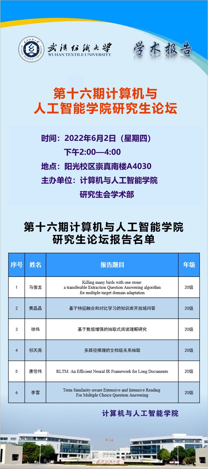武汉纺织大学计算机与人工智能学院 地址:武汉市江夏区阳光大道1号电话:(027)59367297 邮编:430200