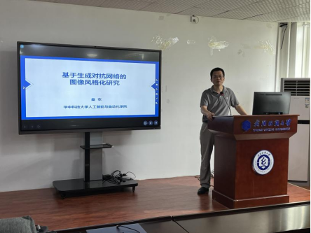 7月7日上午10点,我校第177期阳光论坛在崇真楼A4030举办,华中科技大学人工智能与自动化学院博导桑农教授受邀作题为“基于生成对抗网络的图像风格化研究”的学术报告,该论坛由计算机与人工智能学院副院长彭涛教授主持,我院在校教师及研究生共同参与了该论坛。