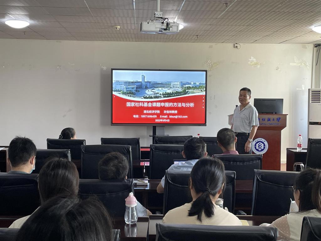 9月3日上午9点,我校第189期阳光论坛在崇真楼A4030举办,湖北经济学院信息与通信工程学院二级教授孙宝林受邀作题为“国家社科基金课题申报的方法与分析”的学术报告,该论坛由计算机与人工智能学院副院长彭涛教授主持,我院青年博士及预申报国家自科基金的老师们共同参与了该论坛。