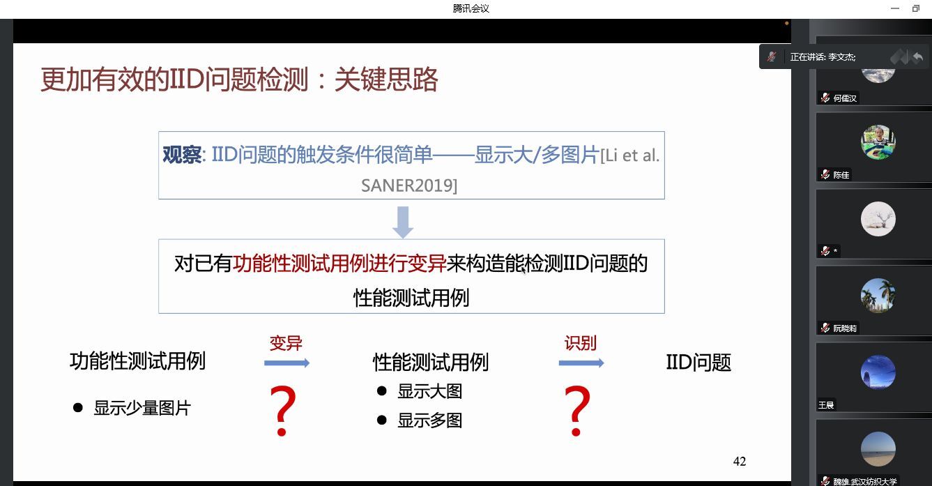 10月10日晚19:00,我校第237期阳光论坛在腾讯会议线上举办,南京大学李文杰博士受邀作题为“Android应用低效图片显示问题的理解和检测”的学术报告,该论坛由计算机与人工智能学院人工智能系系主任李丽副教授主持,青年博士们参与了该论坛。