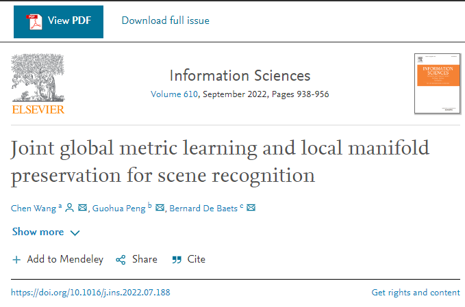 近日,我校计算机与人工智能学院青年教师王晨博士在场景图像识别方面取得了重要的研究进展。相关成果以“Joint global metric learning and local manifold preservation for scene recognition”为题发表在计算机科学领域一区top期刊《Information Sciences》上。该论文的第一单位为武汉纺织大学,第一作者为武汉纺织大学计算机与人工智能学院王晨博士。