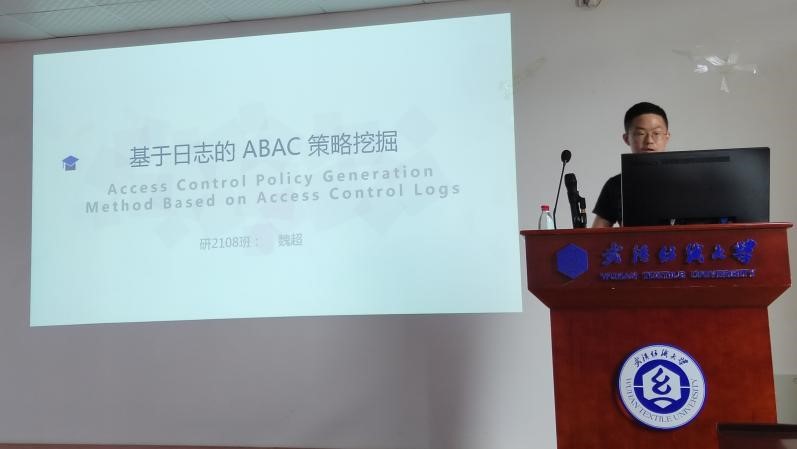 魏超的报告题目是“基于访问控制日志的ABAC访问控制策略生成方法”,他指出,数据的共享与利用一直以来面临着安全风险,数据被秘密爬取类似事件日益严重。访问控制是保护数据安全的重要手段之一。针对该种现象,基于属性的访问控制(ABAC)具有更高的灵活性,不仅支持大规模信息化系统的细粒度访问控制,还可以支持动态的访问控制。他主要介绍了一种基于访问控制日志的ABAC访问控制策略生成方法,这种基于无监督机器学习算法从日志数据预处理、候选规则挖掘、候选规则筛选、规则优化步骤提取出准确率高、过度授权风险较低的规则。报告结束后,师生们进行了现场提问,魏超对相关专业问题进行了详细的解答。