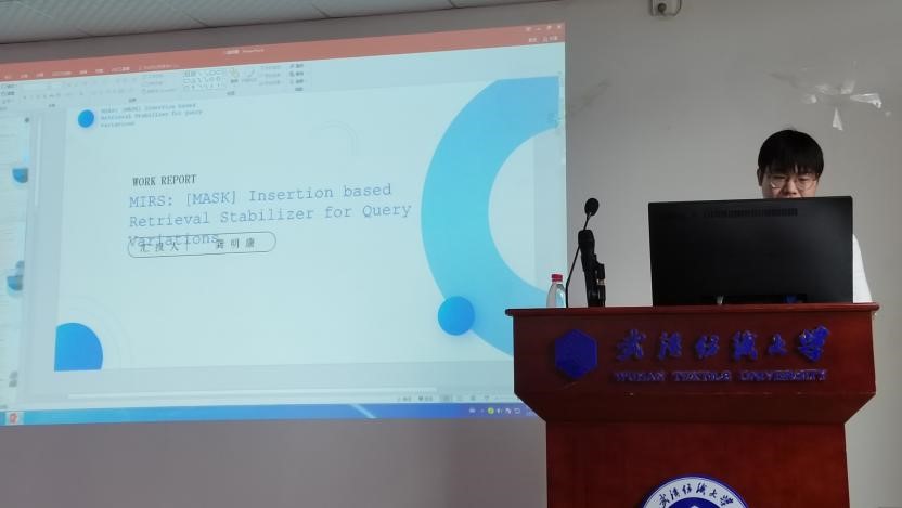 龚明康的报告题目是“MIRS:[MASK] Insertion based Retrieval Stabilizer for Query Variations”。他指出,预训练语言模型(PLM)极大地推动了文档检索任务的发展。然而最近的研究表明,PLM很容易受到查询变化的影响,即包含拼写错误或单词重新排序等。为了有效解决该问题,他重新审视了掩码语言模型(MLM),并提出了一种鲁棒的微调算法。该算法与现有方法的不同之处在于,将[MASK]标记插入到查询变体中,并进一步鼓励原始查询对其变体之间的向量相似性。通过所提出此方法在检索精度方面平均表现出相对1.8MRR@10绝对点增强。