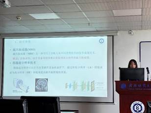 张彤同学分享的主题是“Iterative Consistent Attentional Diffusion Model for Multi-Contrast MRI Super-Resolution”,她讲述的多对比度磁共振成像(MRI)超分辨率(SR)旨在通过利用多对比度图像的互补信息来提高MR图像分辨率。然而,传统的基于扩散模型的方法引入了复杂的条件约束,通常会产生不一致的结果。此外,现有技术难以准确捕获多对比度 MR 图像与其相应的低分辨率 (LR) 图像之间的全局和局部关系。为了克服这些局限性,她们提出了一种用于多对比度 MRI SR 的迭代一致注意力扩散模型。其中,迭代扩散模型通过迭代分离SR和扩散过程来减轻复杂的条件约束,一致注意力融合网络通过创新的金字塔交叉注意力和可变形通道注意力机制捕获多对比度和 LR MR 图像的全局和局部相关性。此外,她们还设计了一种双重平衡损失函数以平衡去噪和超分辨率水平。最后的实验结果证明了她们的方法在推进MRI SR方面的有效性。