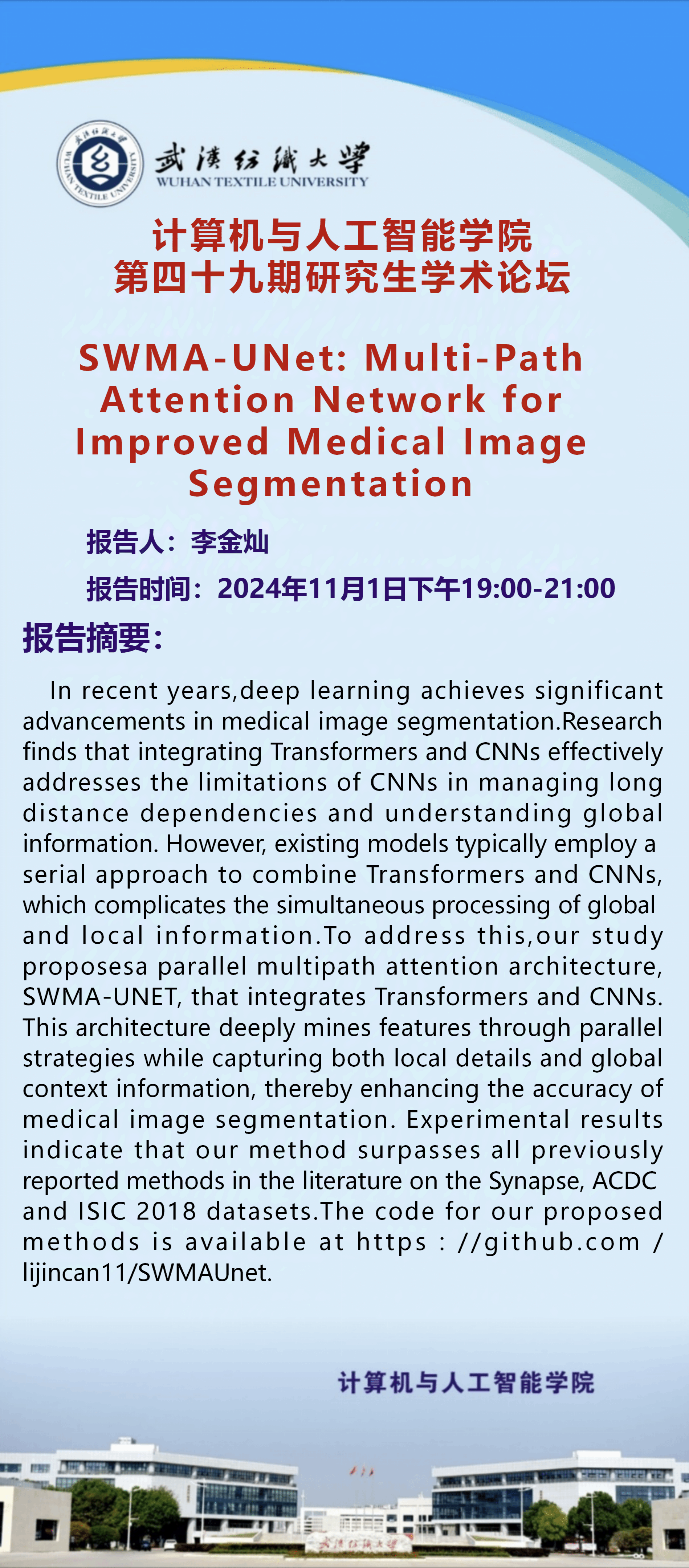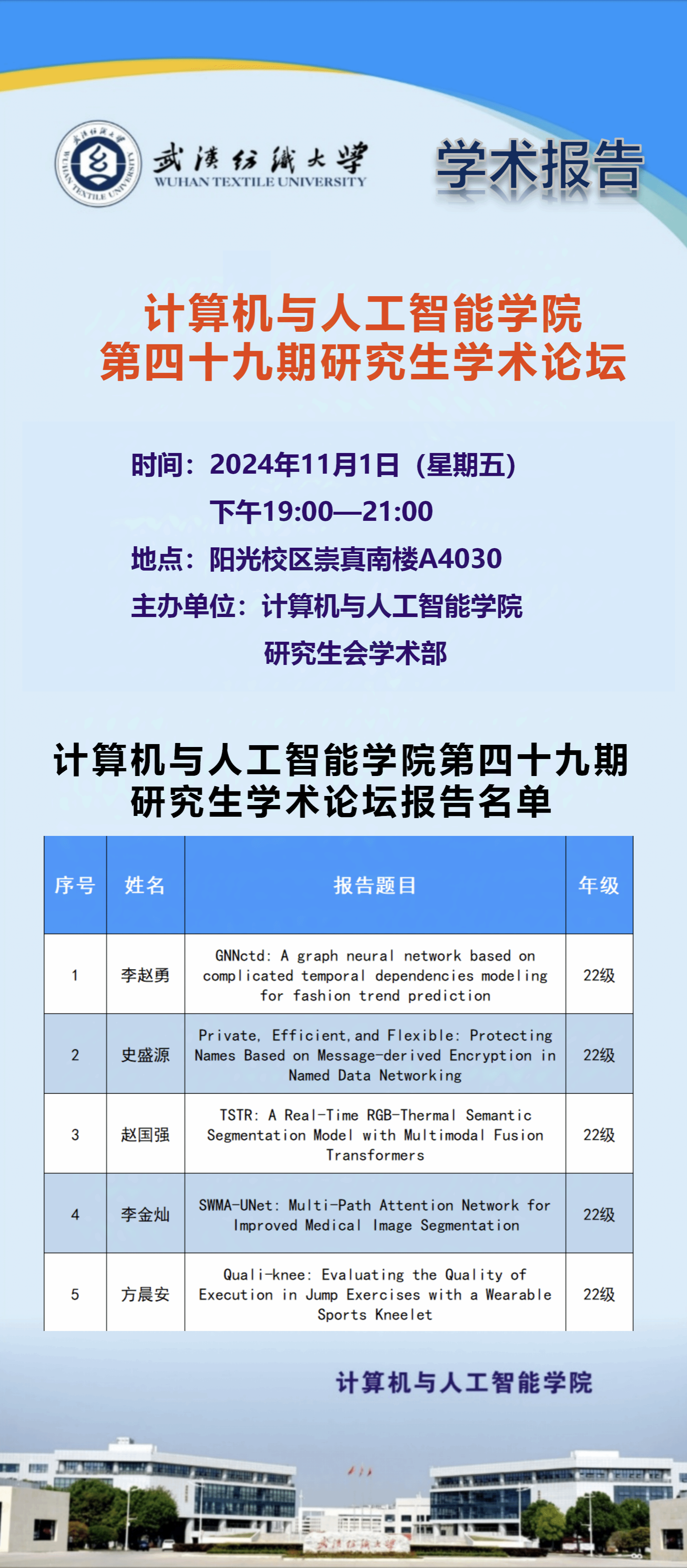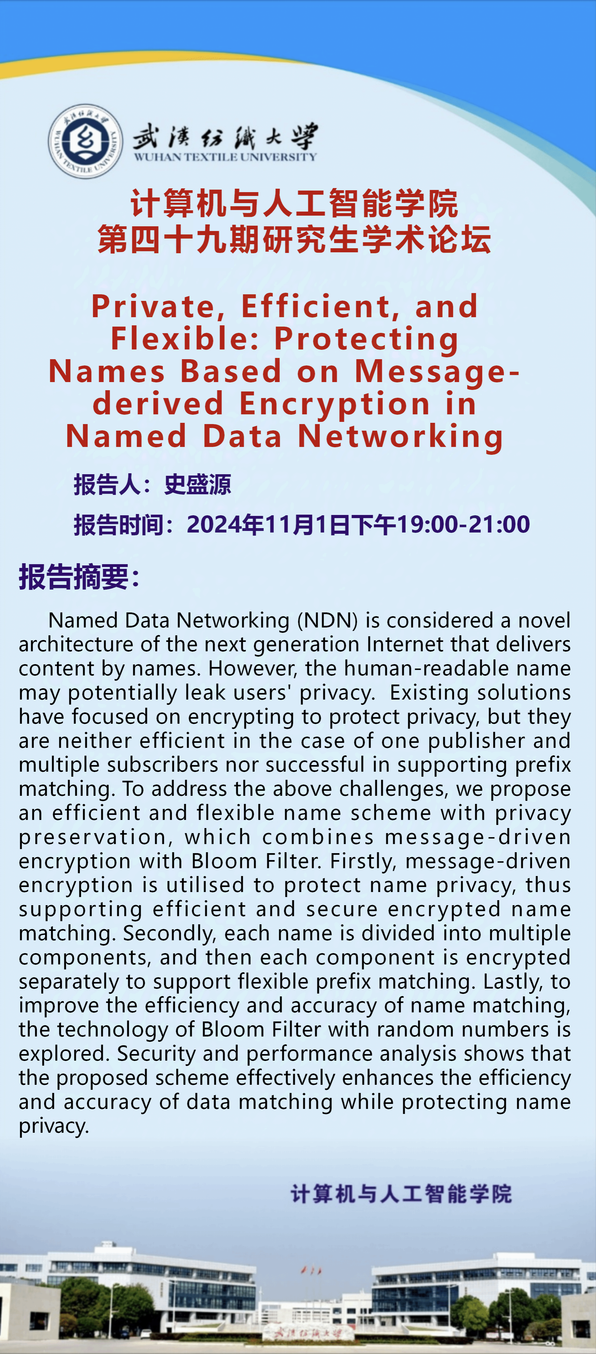 来源: 计算机与人工智能学院 作者:宣传部编辑人:罗园发稿时间:2024-10-25浏览次数: