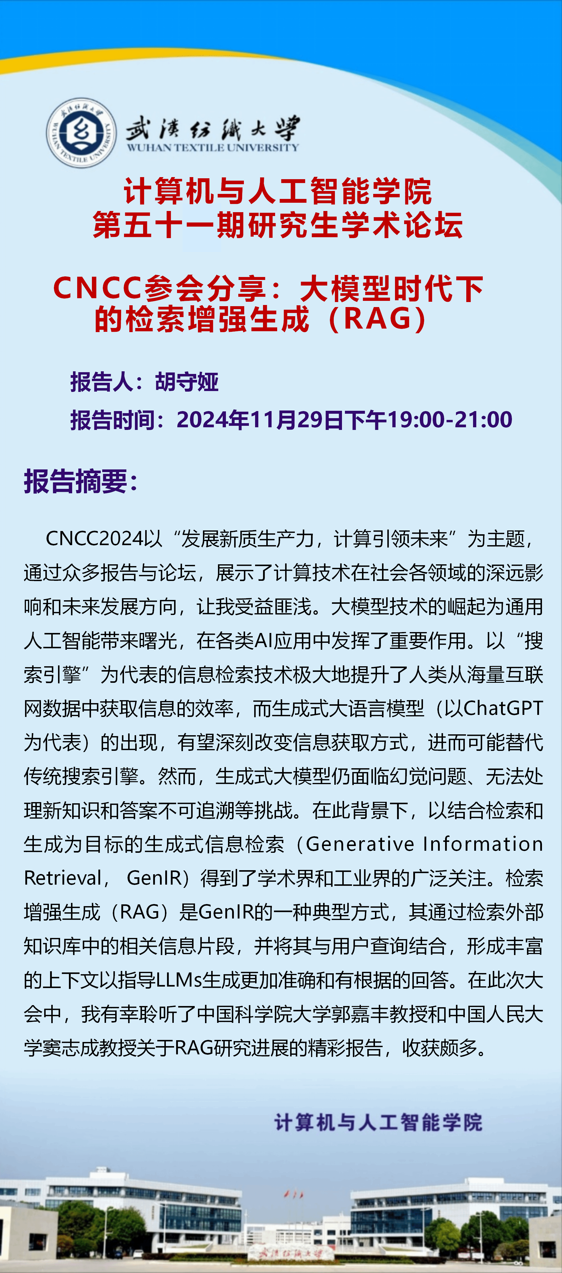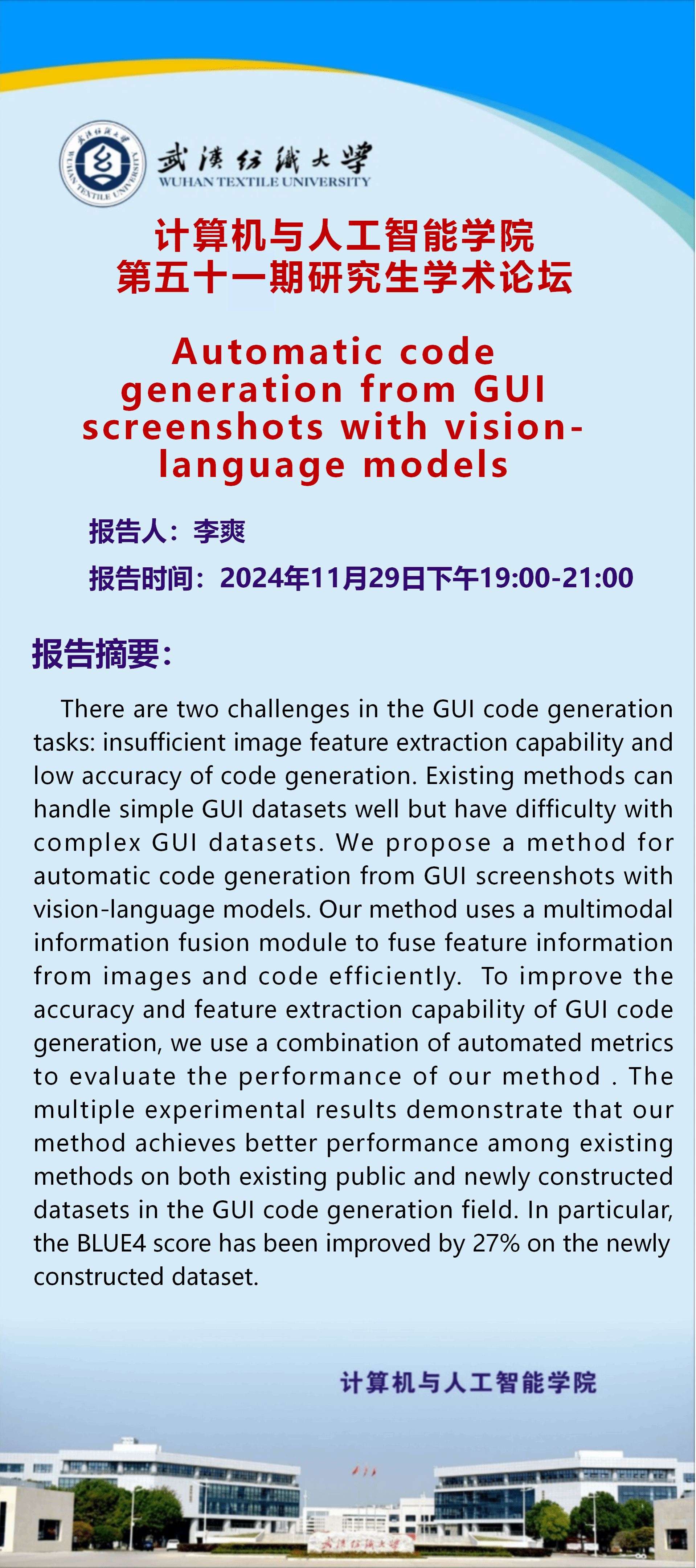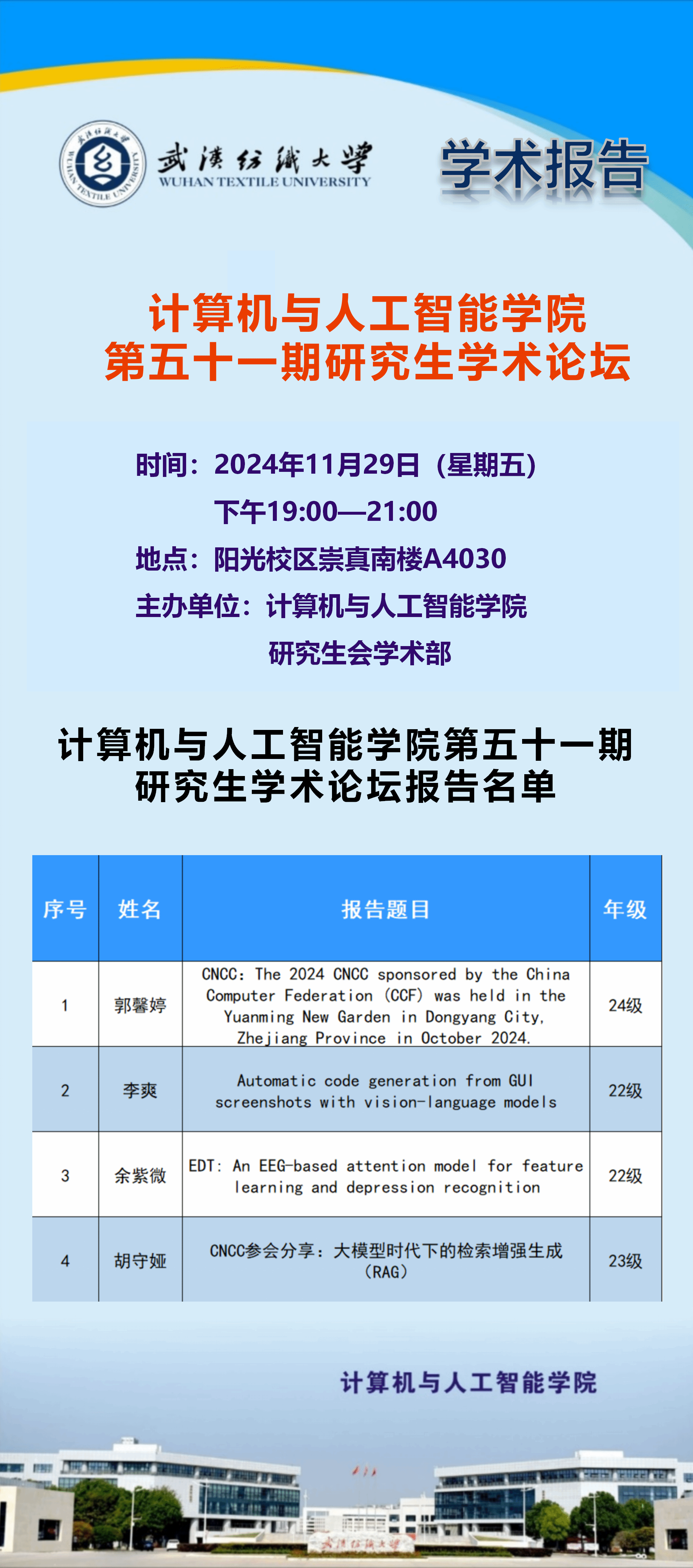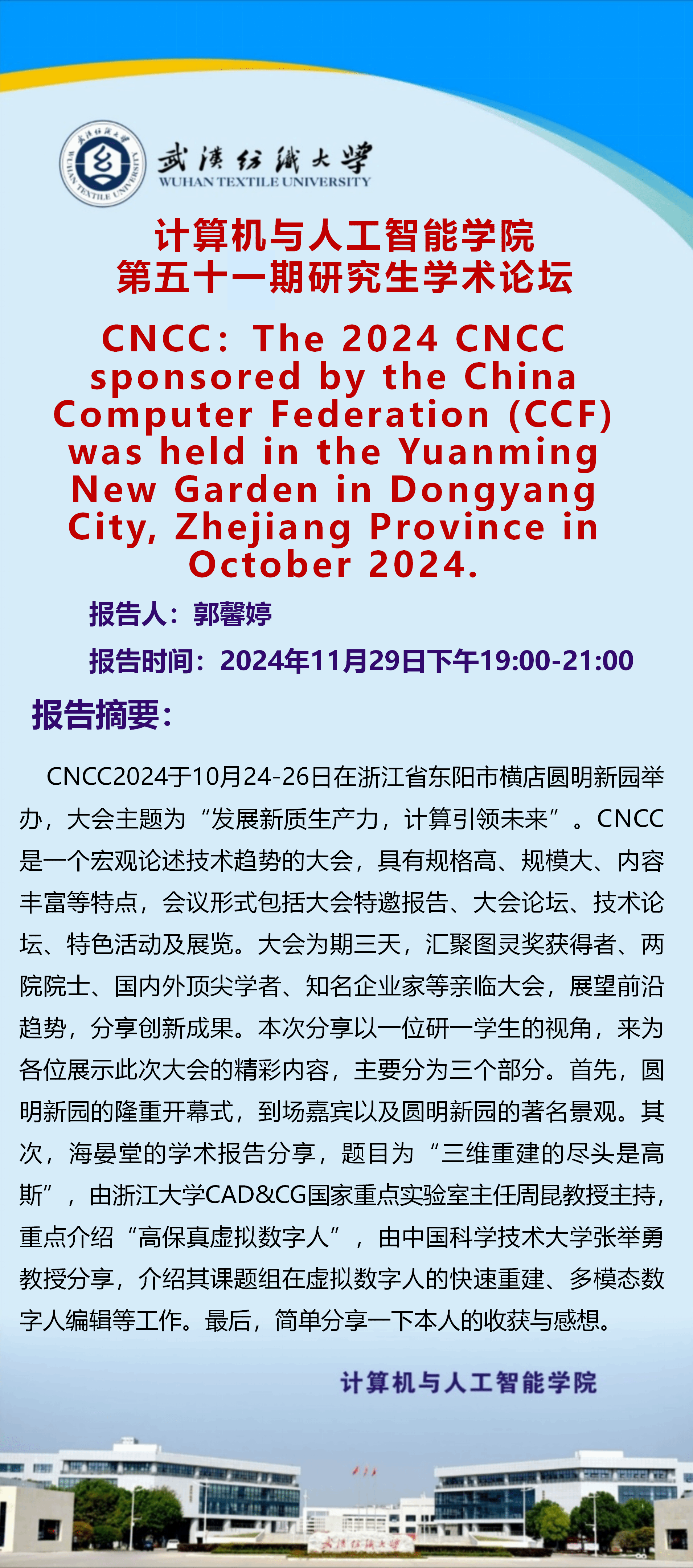 来源: 计算机与人工智能学院 作者:宣传部编辑人:罗园发稿时间:2024-11-25浏览次数: