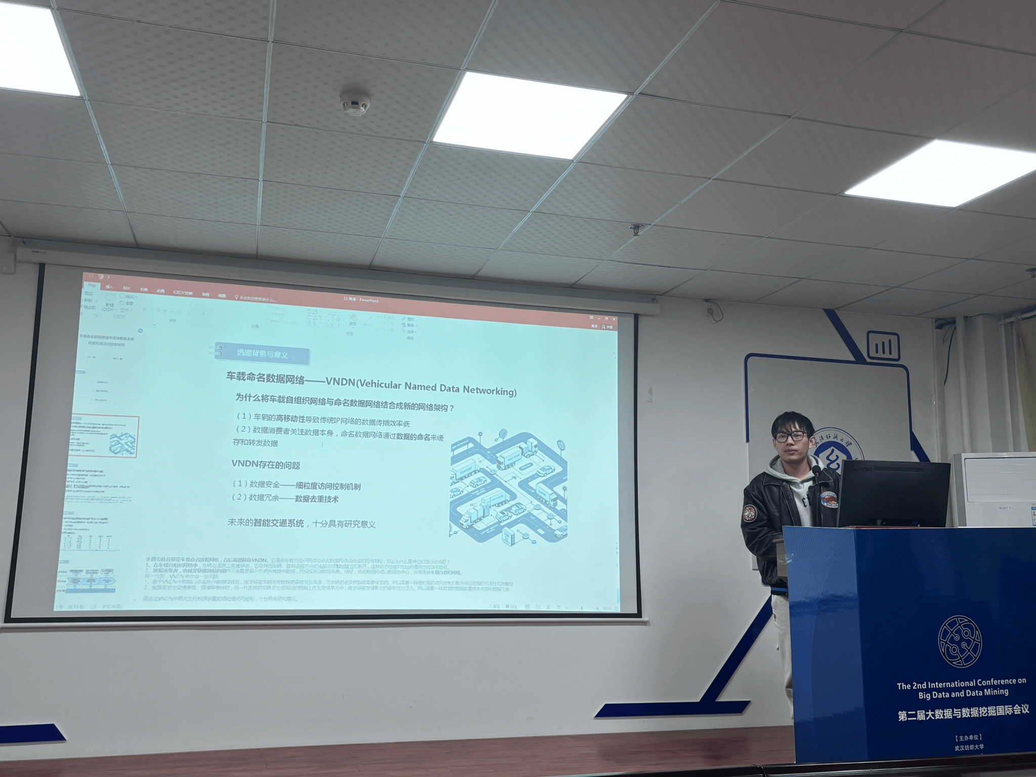 陈湛同学分享的主题是“AC-DD:车载命名数据网络中支持数据去重的细粒度访问控制研究”。他讨论了车辆命名数据网络在提高数据传输效率的同时,如何面对大量敏感数据的安全和冗余问题。他提出的AC-DD方案是一个严格的访问控制方案,支持数据去重,采用分层加密结构,底层使用信息驱动的密钥加密明文,上层通过基于属性加密的方法来实现精细的访问控制。