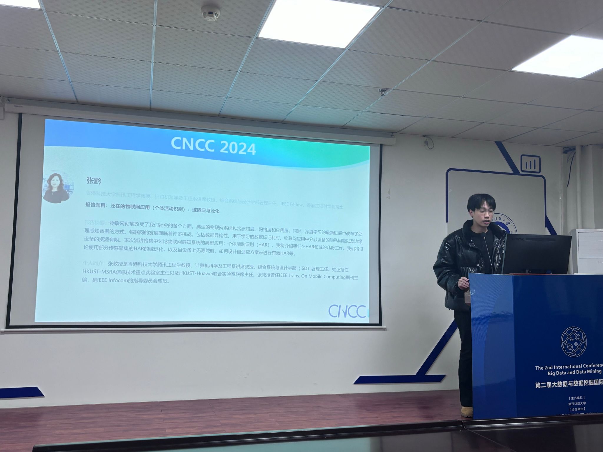 许家瑞同学分享的主题是“2024CNCC参会汇报”主要围绕在CNCC大会上了解到的内容展开,重点关注移动计算技术领域。他首先介绍了张谦教授课题组近年来在人体活动识别领域取得的突破,特别是在泛化和领域自适应模型设计方面。接着,他讨论了一个准确且适用于医学康复的呼吸检测方案,并提出了多模式技术的建议。此外,他还简要介绍了会上关于无线技术的前沿突破,以及毫米波雷达在感知世界方面的一些案例。