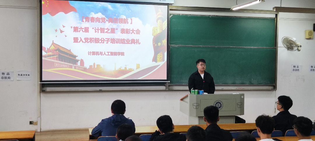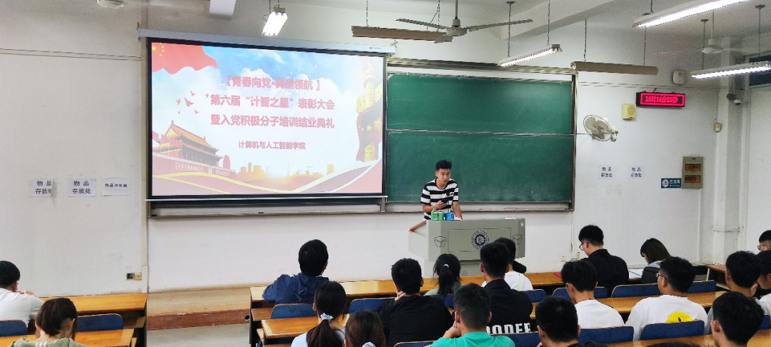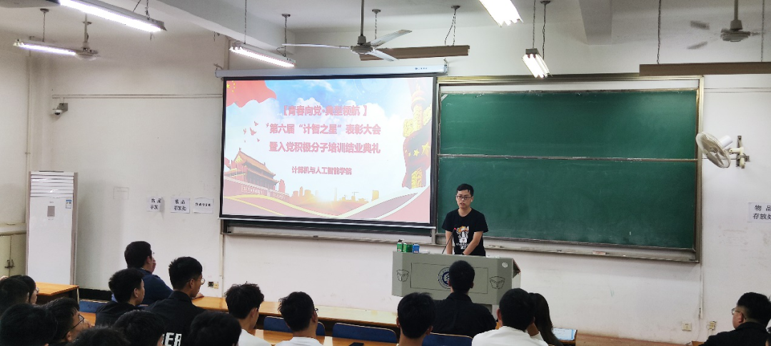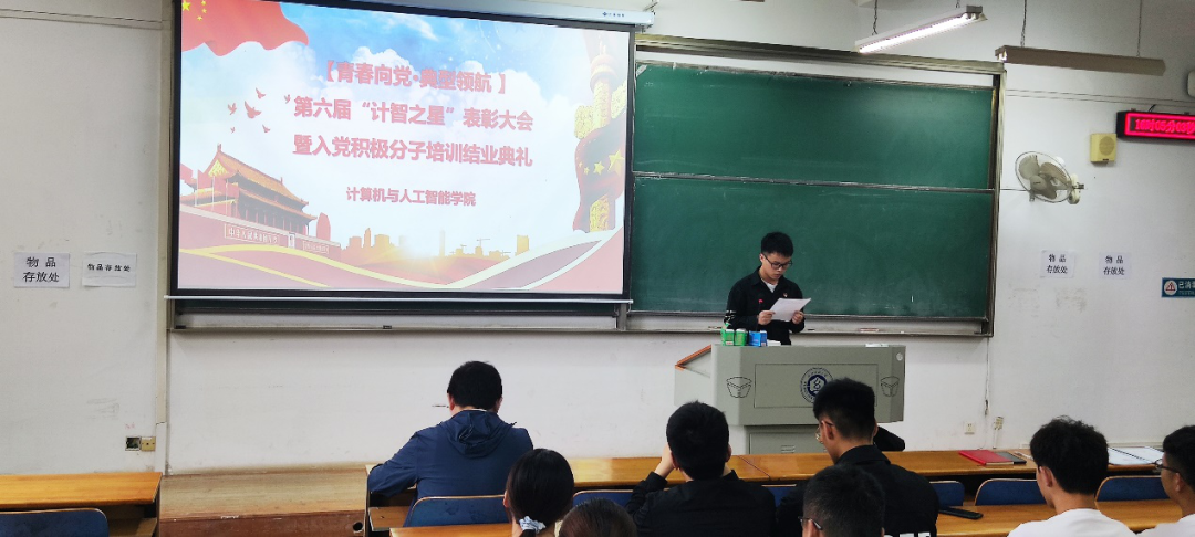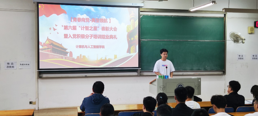 会上,许超宣读第六届“计智之星”表彰文件,同时宣读了入党积极分子培训结业名单和未合格学生名单,他希望同学们保持入党的初心,坚定自己的信念和理想,追随中国共产党,为祖国、为人民、为社会努力学习,为社会主义建设贡献属于自己的一份力量。对于没有顺利结业的同学,许超鼓励他们继续深入学习党章及相关知识,尽早结业。