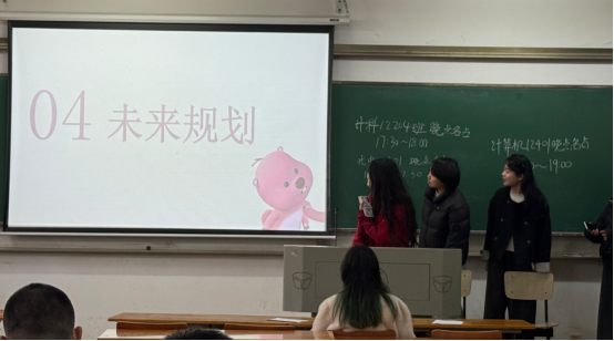 4月3日,计算机与人工智能学院计算机类12401班在三教成功召开了学期小结班会。本次班会由班长梅媛主持,全体同学共同参加。班会围绕上学期学业总结和大学生活适应情况展开,同学们根据上一学期的学习状况进行自我反思,同时对本学期的学习生活进行新的规划,明确本学期的新航向与奋斗方式。