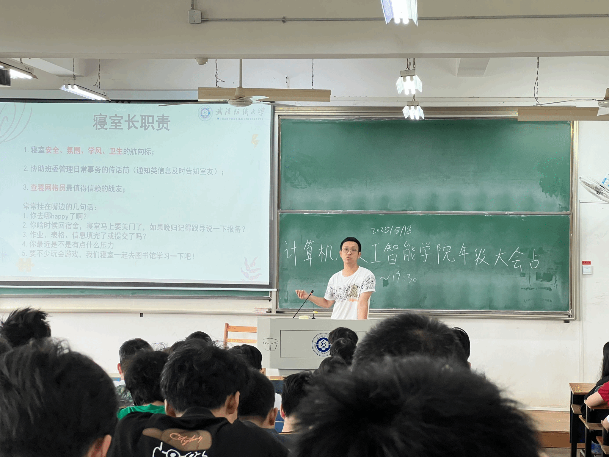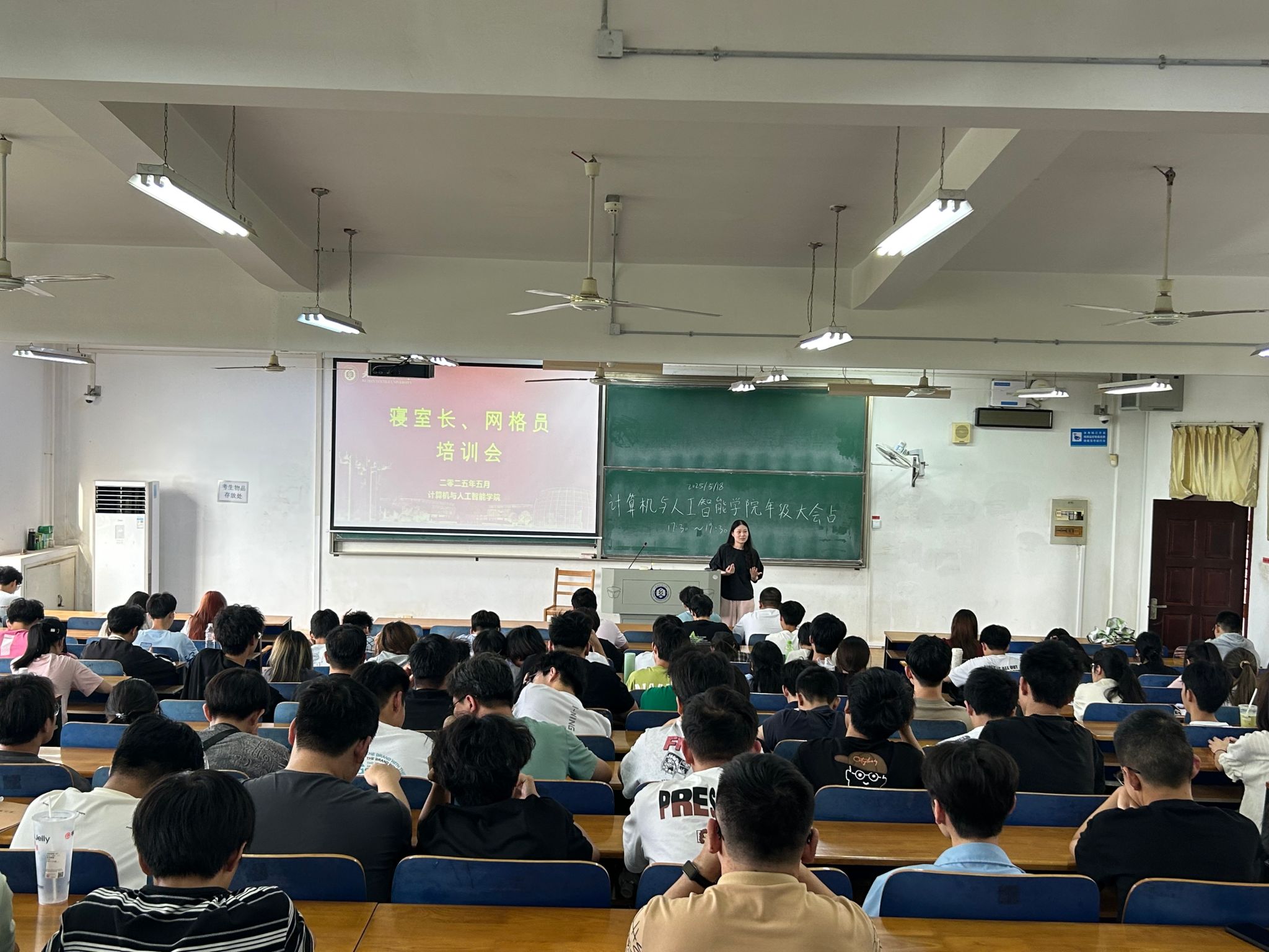 为强化学院宿舍管理安全,提升寝室长、网格员等学生骨干的责任意识与应急处理能力,5月18日计算机与人工智能学院在三号教学楼组织召开“寝室长、网格员护航能力提升培训会”。学工办主任喻仪,2024级辅导员李港,各班班长、团支书,全体寝室长、网格员参加此次培训。本次培训由李港主持。