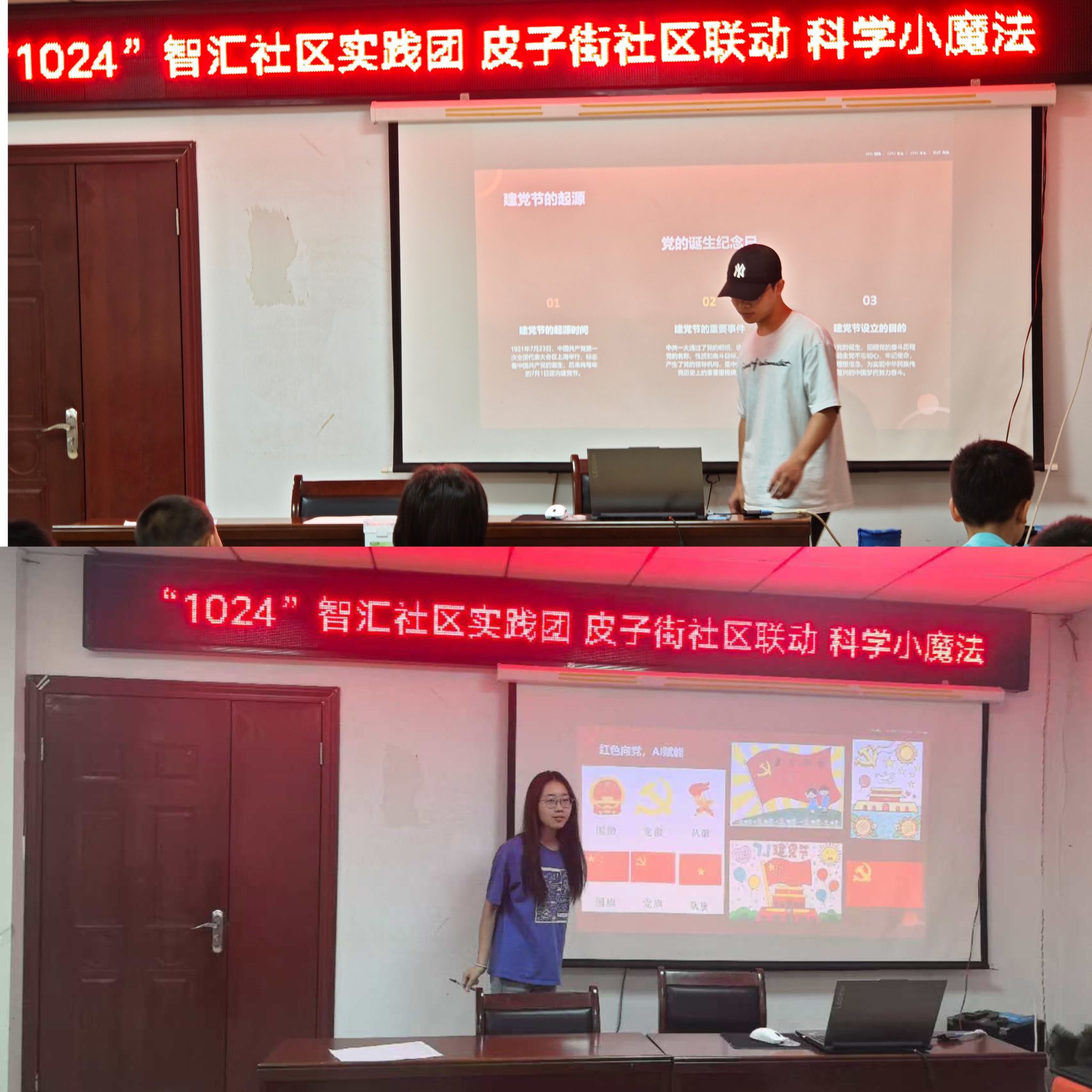 7月1日,武汉纺织大学计算机与人工智能学院“1024”智汇社区实践团与皮子街社区携手,开展了一场别开生面的"红色向党,AI赋能"党史教育活动,为社区小朋友带来了一次难忘的学习体验,也为党的生日献上祝福。