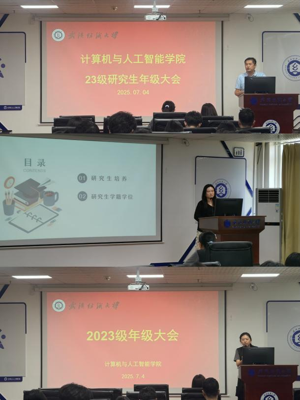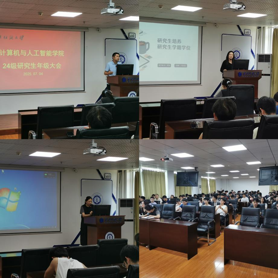 7月4日上午,计算机与人工智能学院在4030会议室召开了研究生年级大会。学院副院长魏雄、教学秘书罗园、研究生辅导员余梦帆和2023级、2024级研究生参会。
