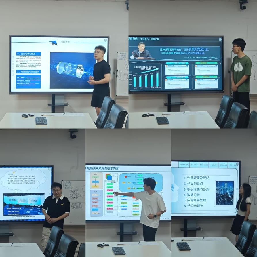 本次校内选拔赛选题涵盖了机器学习算法优化、深度学习应用创新、计算机视觉、自然语言处理等多个前沿领域。各参赛队伍精心备赛,从参赛作品的技术架构、算法创新、实验验证和应用价值等方面进行了演示与讲解。在答辩现场,参赛选手们以扎实的研究成果展开激烈角逐。
