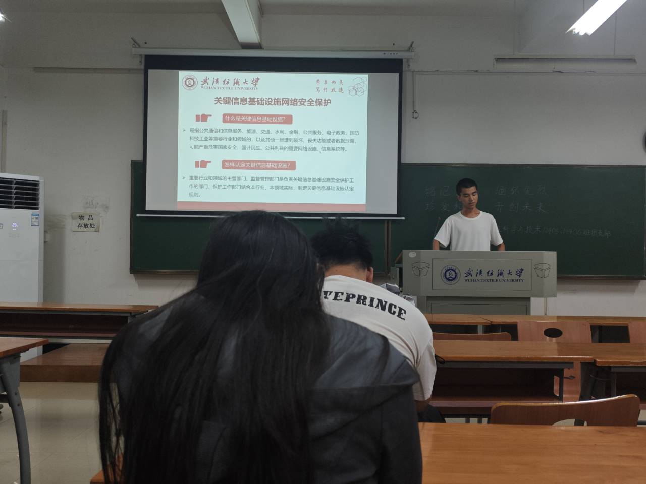 随后,班长向同学们详细介绍了我国网络安全的政策法规,通过具体案例解读,让同学们了解到违反网络安全法规的严重后果,进一步增强了同学们的法律意识和自律意识。在网络安全基础知识讲解环节,围绕网络安全保护、人工智能安全等方面展开,介绍了常见的网络安全威胁类型,如病毒入侵、黑客攻击、数据泄露等,并传授了相应的防范措施和技巧。