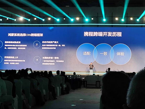大会高潮环节是鸿蒙6.0 Release版本的正式发布。发布环节中,技术专家详细介绍了鸿蒙系统选择CRN跨端框架的四大优势:框架基建成熟且热度高,具备成熟配套体系;历史代码资产庞大,保障业务无缝迁移;开发者能快速上手,降低学习成本;以及长期的多端一致性,实现“一份代码多端运行”。以携程为例,专家展示了该框架在“适配”“一致”“体验”维度的实践成果,凸显了鸿蒙在提升开发效率和用户体验方面的突破。