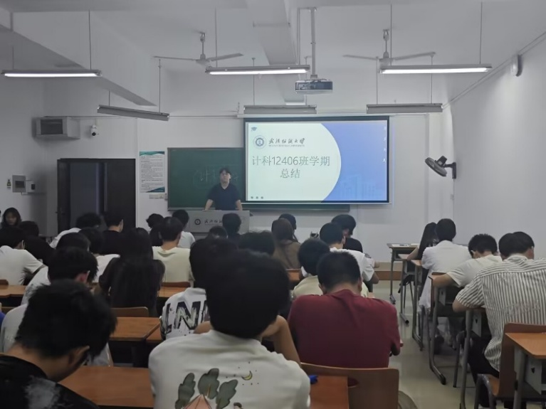 近日,计算机12406班学期小结主题班会在7教召开。班主任黄俊杰老师及全班同学参会,会议围绕学期阶段性表现展开全面复盘,明确改进方向。