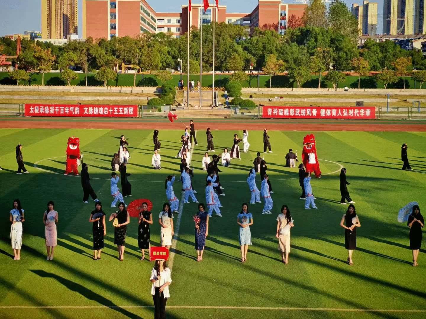 太极拳,源远流长,博大精深。它融道家之“自然”、儒家之“中和”、释家之“空灵”于一体,汇健身、修心、文化传承于一脉。推动太极拳走进校园,是我校落实“以文化人、以体育人”理念的生动实践,也是构建富有底蕴的校园文化氛围的重要举措。