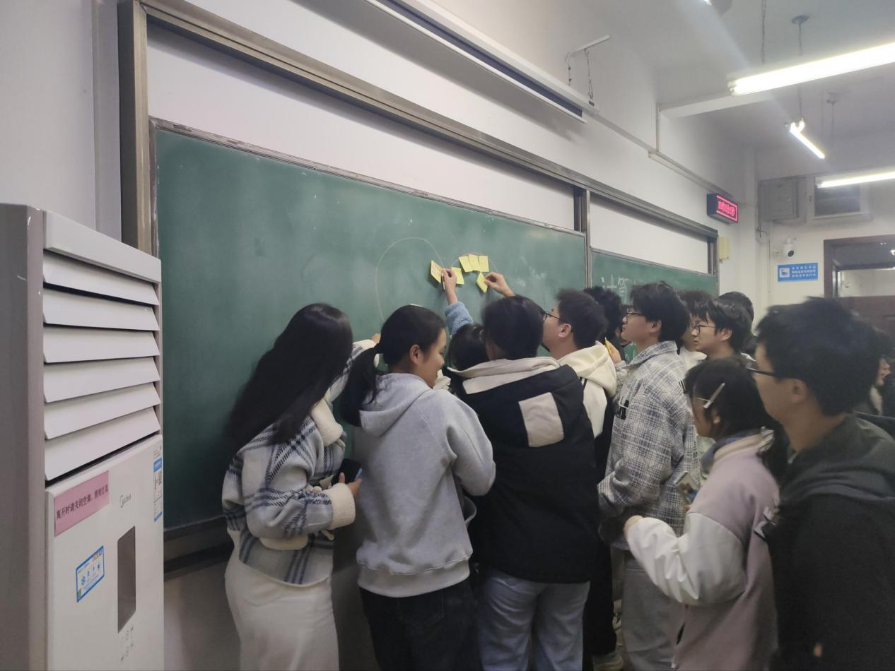 在“学业启航——解锁大学学习新节奏”班会中,同学们通过“学习困惑盲盒”匿名分享学习难题,集体讨论解决方案,并分组演练“康奈尔笔记法”“四象限时间管理”等实用技巧,共同汇编成《班级学习技巧手册》,为大一新生的学业适应注入了信心与方法。“敞开心扉,拥抱快乐”班会则以“击鼓传花”的形式展开,同学们围绕情绪调节踊跃发言,分享个人应对焦虑、压力的经验。在轻松的氛围中,大家学习了倾诉、运动、音乐等多种情绪疏导方式,增强了自我关怀与情绪管理意识。“信任之旅”活动通过“盲人”与“向导”的角色体验,让同学们在非语言协作中感受信任与被信任的力量。活动后的分享环节,不少同学表示“学会了换位思考”“体会到帮助他人的温暖”,人际之间的理解与支持在无声的行动中悄然深化。