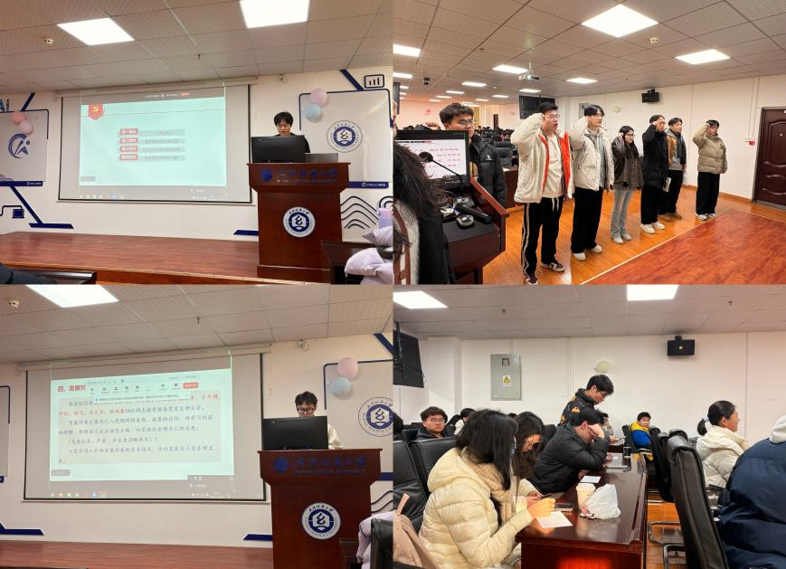 12月29日上午,计算机与人工智能学院研究生党支部在崇真楼南楼A4030召开发展对象转预备党员暨预备党员转正大会。研究生党支部党建秘书余梦帆、研究生党支部全体党员出席会议,具有表决权的正式党员实到人数符合规定,会议同意召开,党支部副书记郭馨婷主持会议。