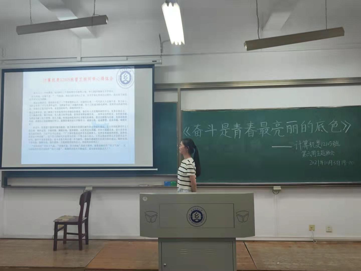 计算机类12102班陈凯旋说到:“2021年是历史与未来衔接、光荣与梦想交汇的一年。而我也正式成为武汉纺织大学的一名大一新生,在新生开学典礼上,徐卫林校长给我们提出了四点建议:一要胸怀家国;二要手握利器;三要脚踏实地;四要强身健体。作为一名计算机与人工智能学院的新生,我将牢记历史使命,树立远大理想,爱国爱校,遵纪守法,践行‘崇真尚美’的校训,发扬‘自强不息,经天纬地’的纺大精神,秉承计算机与人工智能学院‘学至于行,笃行于新’的品格,文明修身,诚实守信,求知创新,勤于实践,团结友爱,孝敬父母,回馈社会,为中华民族的伟大复兴而努力学习!”各班同学都进行了精彩的心得分享和学习交流。