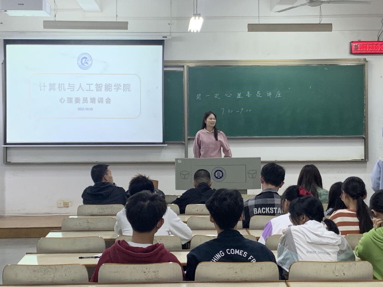 计算机与人工智能学院一直以来非常重视学生心理健康教育工作,关注广大学生的心理发展,宣传普及学生心理健康知识,提升学生的心理素质,培养积极乐观、健康向上,具有良好心理素质和适应能力的优秀学生。此次心理委员培训会不仅为各班心理委员准确定位了工作职责,更建立起了学院关爱学生心理健康的桥梁。希望通过本次培训,各班能将心理健康工作落实到位,营造互助互爱、积极向上、乐观平和的学习生活氛围。