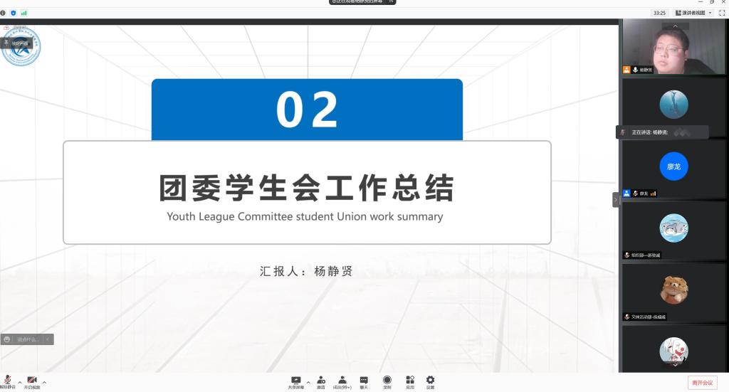 时光如水,岁月如梭。学院本年度的团委学生会工作也即将结束,为推动学院团委学生会工作更好的发展,1月6日晚,学院在线上召开了“计算机与人工智能学院团委学生会2021年工作总结大会”,学院团委书记廖龙出席了本次会议,会议由院学生会主席团成员杨静贤主持,计算机与人工智能学院第一届团委学生会全体成员参与了本次会议。