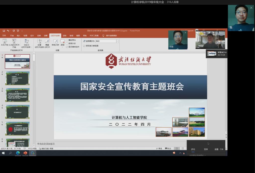 每年的4月15日,是“中华人民共和国国家安全法”规定的全民国家安全教育日。为推动社会主义现代化的建设,深入贯彻习近平新时代中国特色社会主义思想,加强同学们的安全意识,4月17日下午,计算机与人工智能学院开展了“国家安全教育主题班会”活动,各年级辅导员、班主任及同学们积极参与,班会取得良好效果。