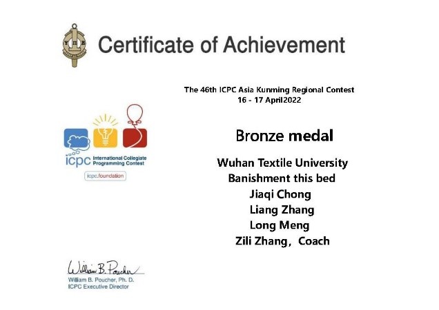 4月16-17日,由昆明理工大学承办第46届ICPC国际大学生程序设计竞赛亚洲区域赛(昆明站)。计算机与人工智能学院ACM俱乐部指导老师崔树芹和张自力指导三支队伍参加此次比赛,最终19级计科专业种佳琪、张亮、孟龙获得铜牌,20级计科专业杨硕和赵汝阳,以及软工专业张宇轩获得荣誉奖。这是ACM俱乐部自2020年成立以来,在该国际顶级赛事中第二次获得奖牌。