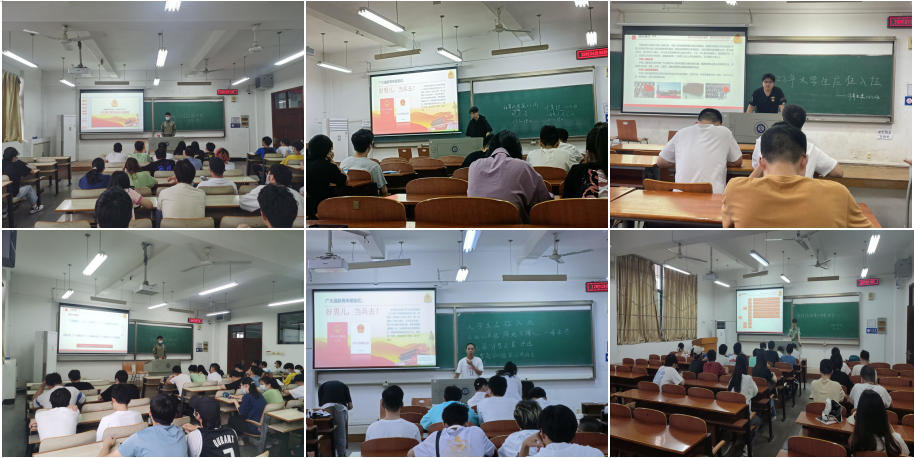 2022年5月8日下午五点,为配合我校2022年大学生征兵前期工作的进行,提高我院大学生应征入伍的热情,学院积极组织各班召开大学生征兵入伍宣传主题班会,全力做好征兵政策信息的准确、及时传递。同时邀请学院部分退役士兵进班宣讲,现身说法,号召在校大学生踊跃参军,主题班会由各班班长主持进行。
