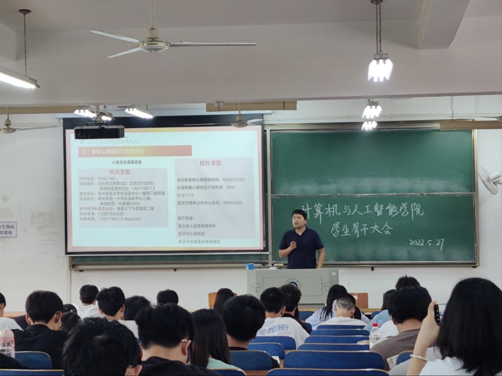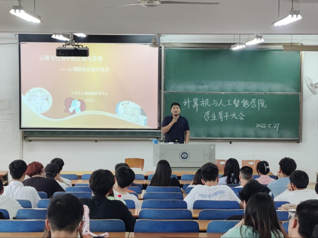 为提高学院心理联络员的理论素质与工作能力,增强学生甄别危机意识,5月27日下午,计算机与人工智能学院开展心理联络员专题培训,学院心理联络员及学生会成员参加此次培训。本次讲座由心理健康中心张万里老师主讲,2020级辅导员喻仪主持。