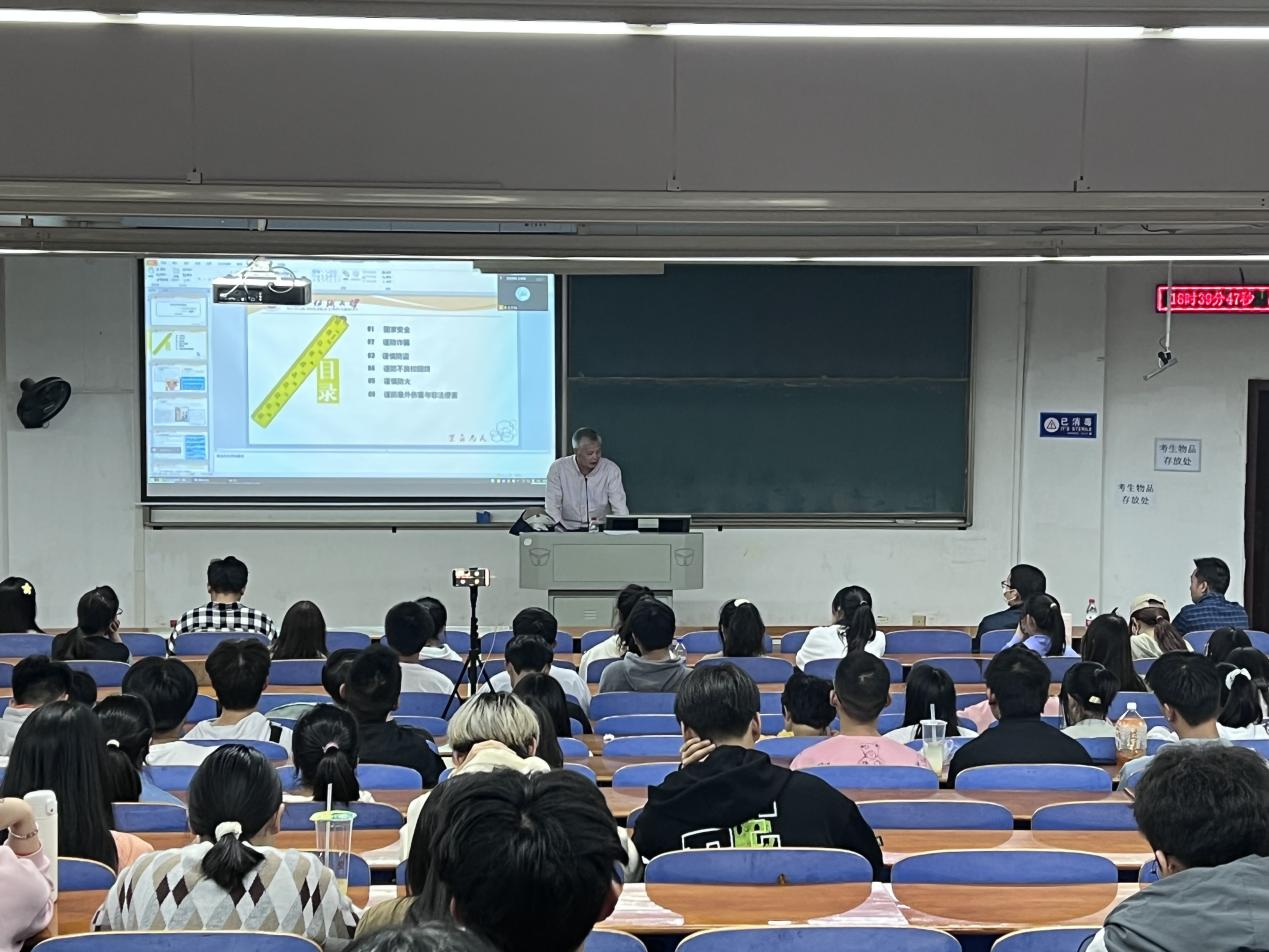 为增强我院2022级新生的安全意识,创建平安校园,10月21日晚,在三教T102、315、316、317教室举行了2022级新生安全教育讲座,本次讲座由学校保卫处夏向阳老师主讲,学院党委副书记向涛,新生辅导员以及2022级全体新生到场聆听。夏向阳以“诗意校园,安全护航”为题从五个方面进行详细讲解。