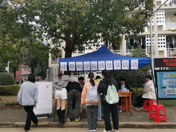 为倡导同学们常怀感恩之心,营造同学朋友间互帮互助、和谐友爱的良好社交氛围。计算机与人工智能学院以感恩节为契机,于11月24日下午在锦绣阁(学生一食堂)侧门,以现场摆点形式面向全校师生开展“心系感恩,传播爱意”主题活动。本次活动由院学生会i心苑主办。