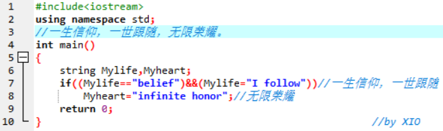 if((Mylife=="belief")&&(Mylife="I follow"))//一生信仰,一世跟随