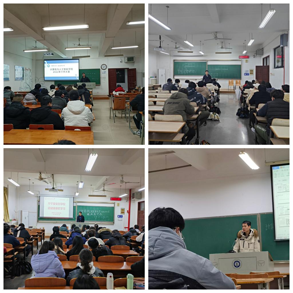 会上,班主任详细讲述了《计算机与人工智能学院2022年十件大事》,指出2022年在学校党委行政的坚强领导下,学院全体师生抢抓机遇、奋发图强,在人才培养、科学研究、社会服务等方面取得一系列丰硕成果,学院获评学校2022年度考核优秀等次。鼓励同学们要结合不同学习阶段:大一适应、大二放飞、大三回归、大四选择、研途绽放,以时不我待的紧迫感、逆水行舟的危机感、舍我其谁的责任感,明确任务单、时间表、施工图,牢记空谈误国、实干兴邦,坚定信心、同心同德,埋头苦干、奋勇前进,以实际行动为建设“学生得到成长、教师得到发展、学科深度融合、社会高度认可”的美好学院而踔厉奋发!