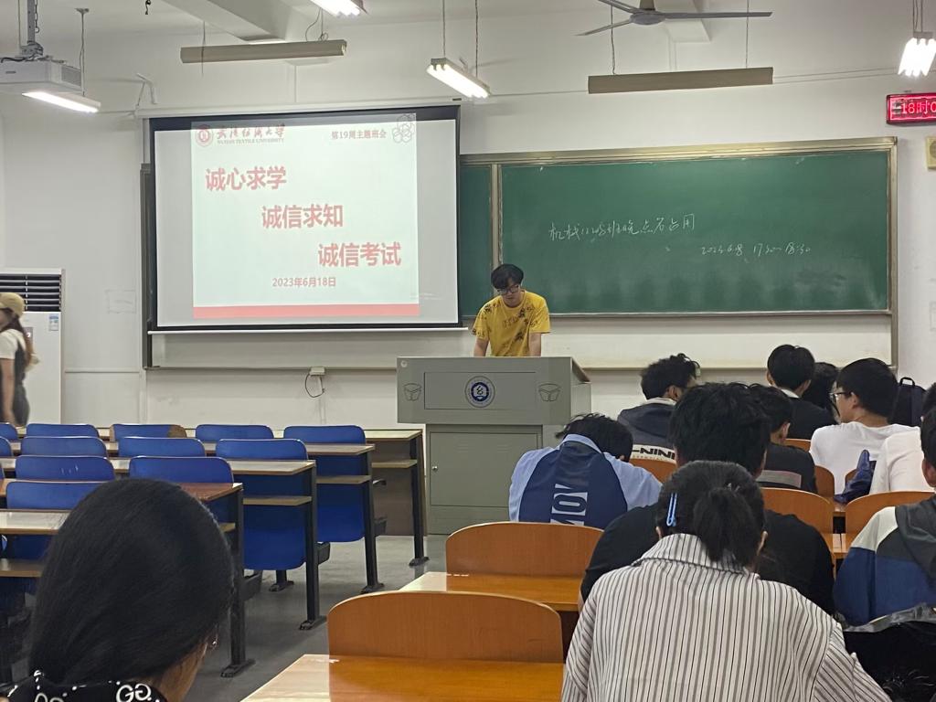 中国古人说:“诚信者,天下之结也。”就是说诚信是结交天下的根本。为引导同学们诚心求学、诚信求知、诚信考试,计算机与人工智能学院于6月18日晚开展了诚信考试主题班会,各年级辅导员、班主任共同主持班会。